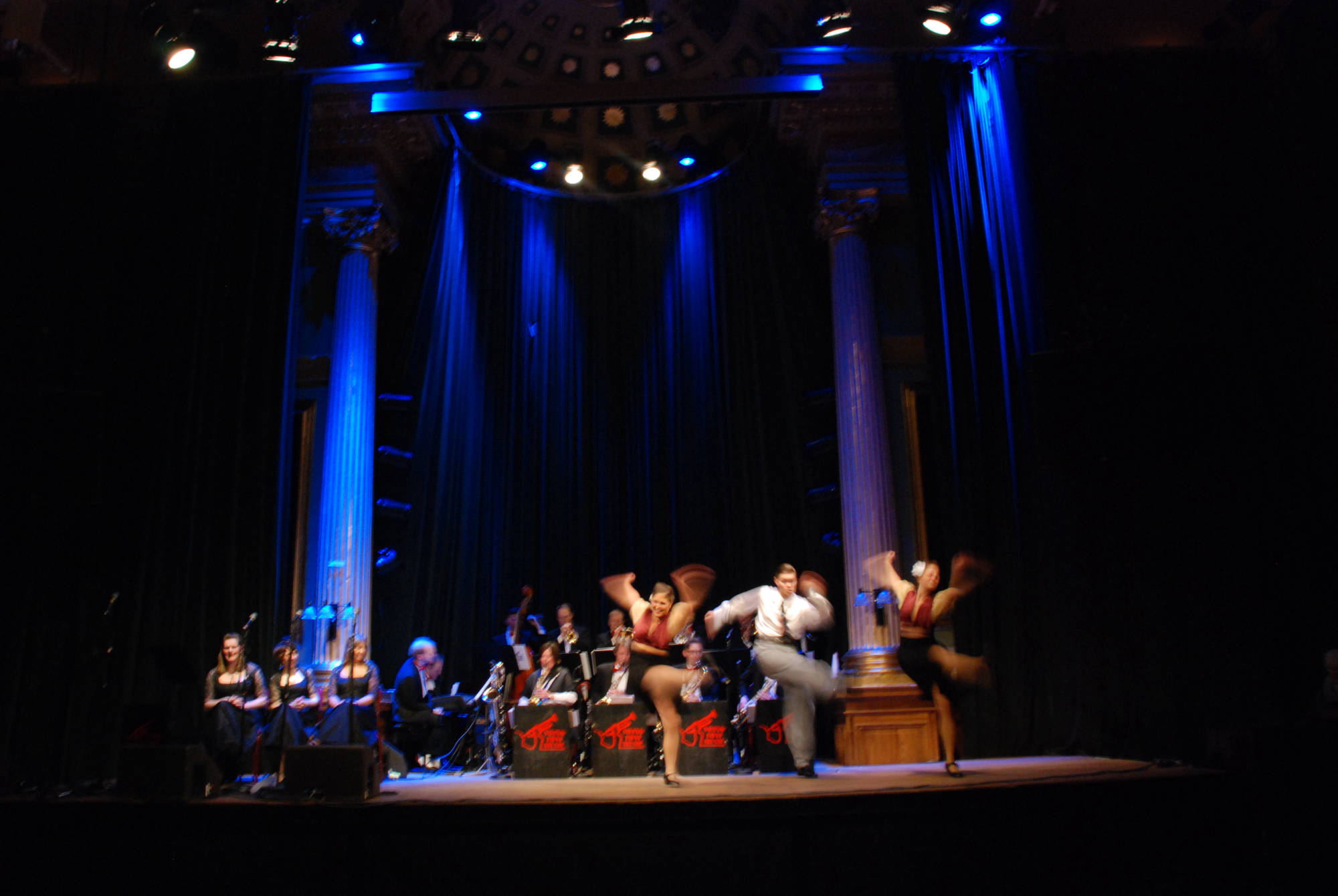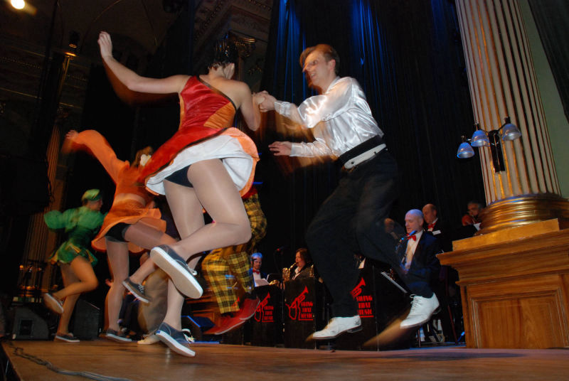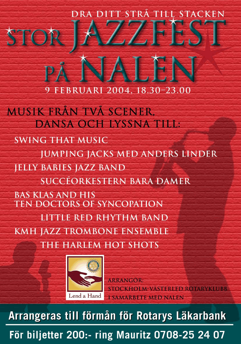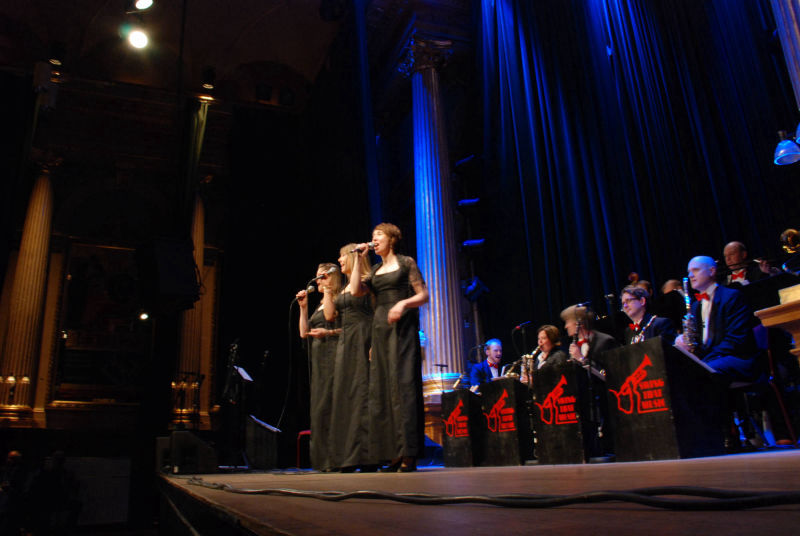 3 trumpeter, 4 saxofoner, 2 tromboner, ett stadigt komp och en suverän kvinnlig sångtrio. Bandet har jobbat ihop sedan 1990, huvudsakligen i Sverige, men också i andra europeiska länder. Dom har varit huvudnummer på många nattklubbar och ballrooms, men har också uppträtt på ett flertal jazzfestivaler. På repertoaren står häftig och uttrycksfull Big Band Swing från 30-talet: Ellington, Don Redman, Basie, Goodman, Fletcher Henderson och många andra.