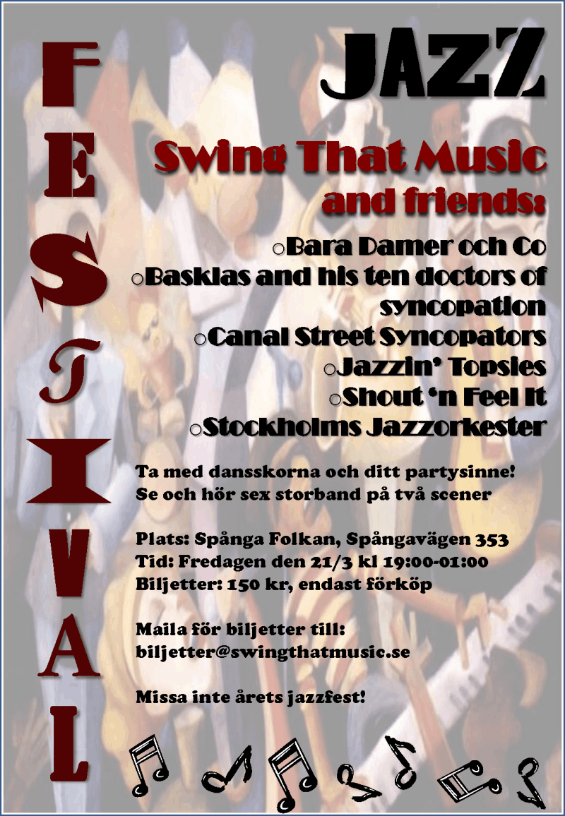Swing That Music är ett unikt 16-manna swingband med rötterna i den synkoperade jazzens glansdagar.