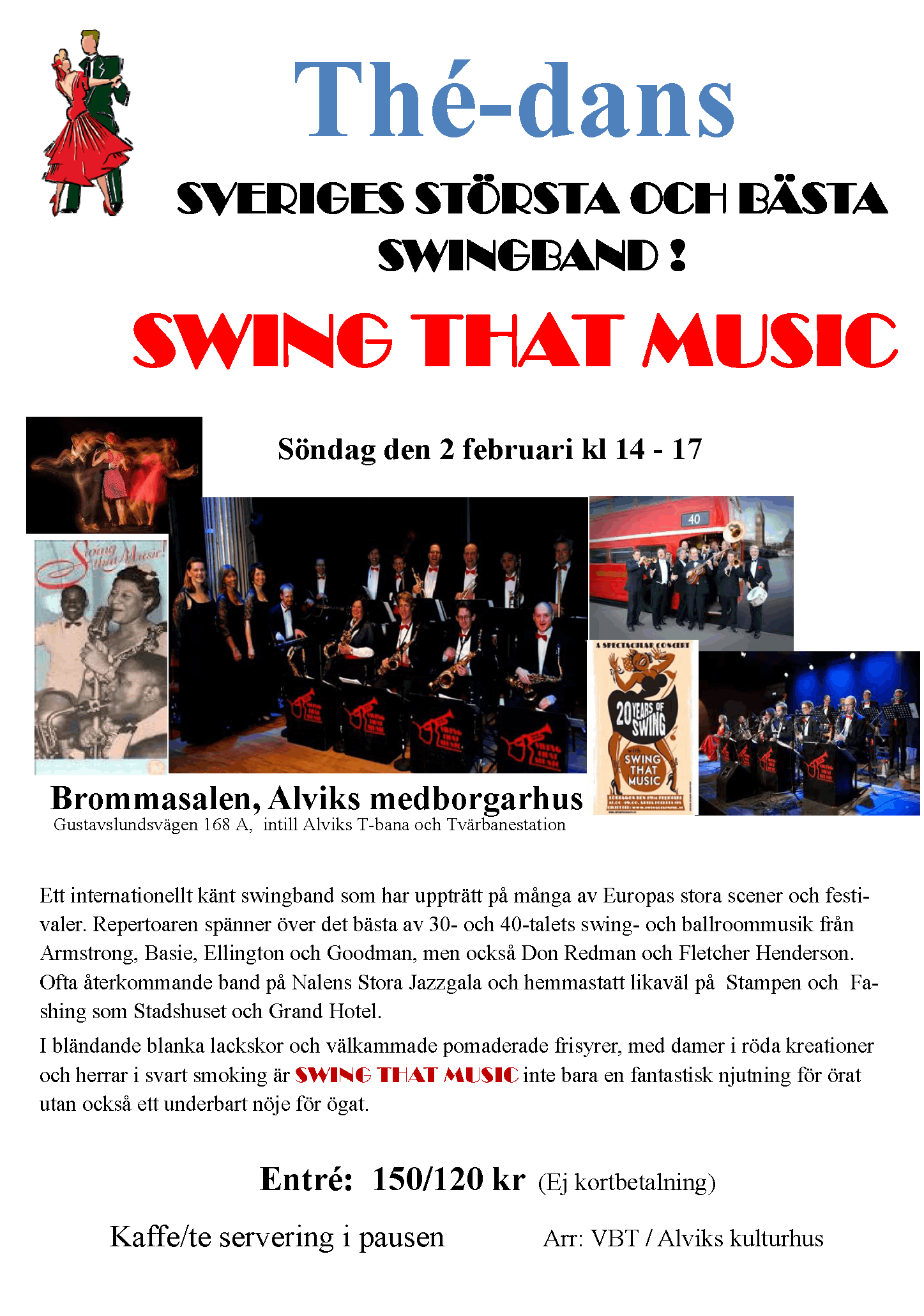 Svarta smokingar, välputsade skor, frisyren på plats. Damer i rött, och med blicken! i ögonen. Att möta Swing That Music är inte bara en njutning för örat, utan också ett sant nöje för ögat.